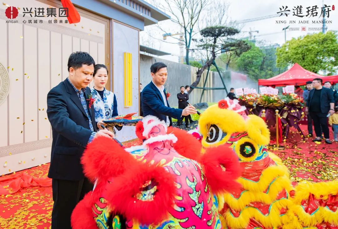 "千古華夏,龍獅為雄;風(fēng)雅珺府,聚氣藏風(fēng);祥獅點睛,承運如鵬。"在眾人的見證下,興進珺府興進集團長沙城市總經(jīng)理管明及相關(guān)領(lǐng)導(dǎo)手持朱砂墨寶,為祥獅點睛,落筆之時,點睛禮成,禮樂奏響,興進珺府營銷中心大門緩緩打開。