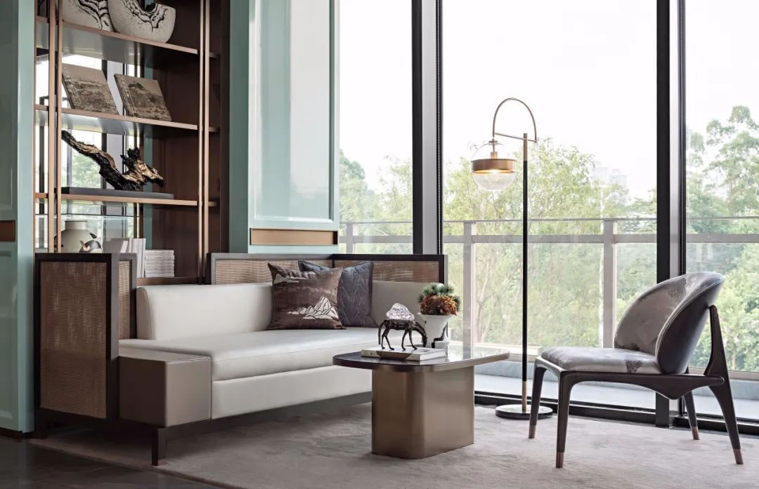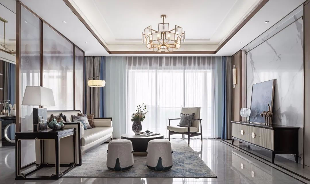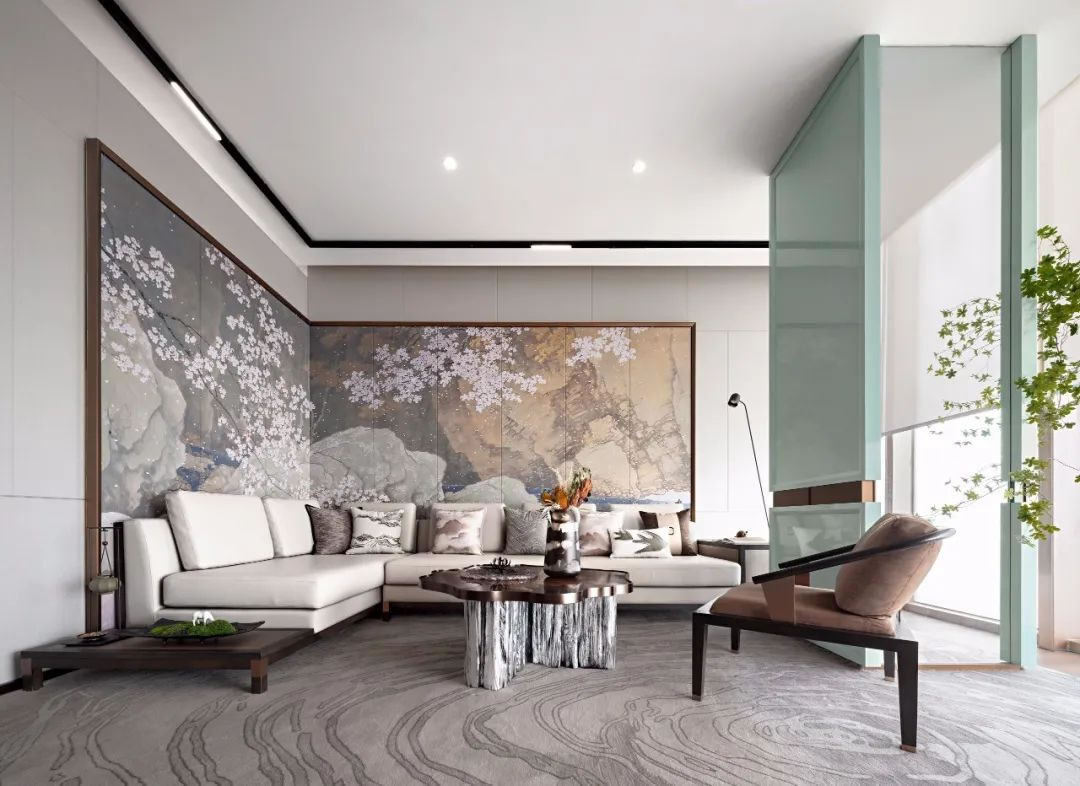 客廳丨東方美學(xué)的空間語言更在于一種體驗(yàn)式的感受,情緒如果它的精神特質(zhì),在規(guī)整的布局,落地的光影,素雅的色彩,細(xì)節(jié)的紋理中都能呼之欲出,讓視覺的思維可以毫無阻礙的,架構(gòu)出一副落筆成軸的畫卷,澄凈通透,美不勝收。