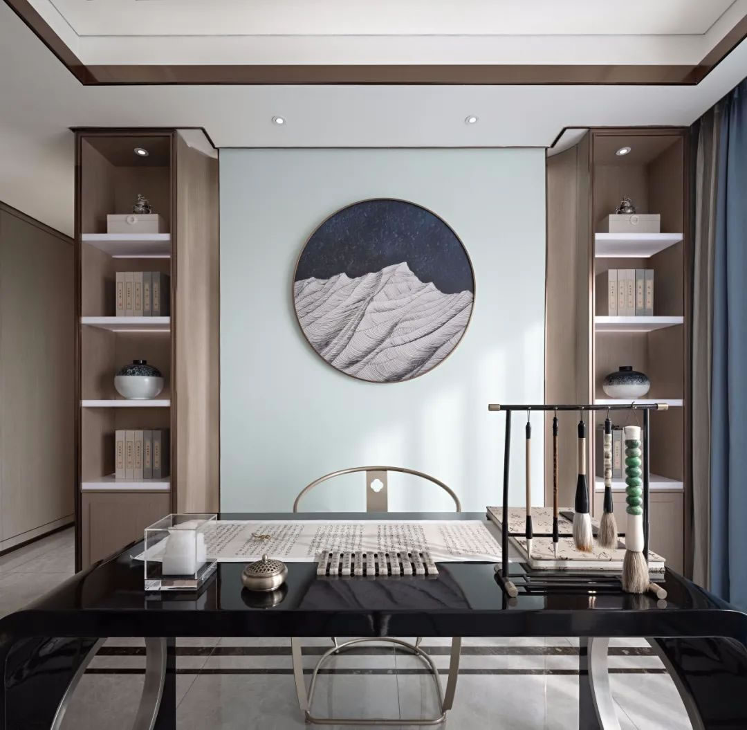 書房丨方與圓的視覺在書房中進(jìn)行了和諧的配比,儒雅的色彩與木質(zhì)的純粹,承載著無限的故事和詩意,通透軒敞,節(jié)奏利落,光影藝術(shù),讓這里閑坐即擁有云卷云舒的暢意,品茗即享受靜觀風(fēng)雨的淋漓,靜享花開景明,待看四時(shí)光景。