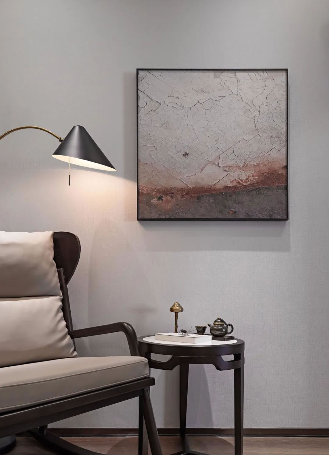 多功能房丨休憩的一隅透漏著柔和的寧靜,少而美的簡單區(qū)隔,讓這里成為了跨越時(shí)間和空間的美學(xué)沉浸,木的氣韻傳遞著東方的神韻,畫的布景傳達(dá)著空間的意境,而燈下的居者享受著屬于自我的時(shí)光靜謐。