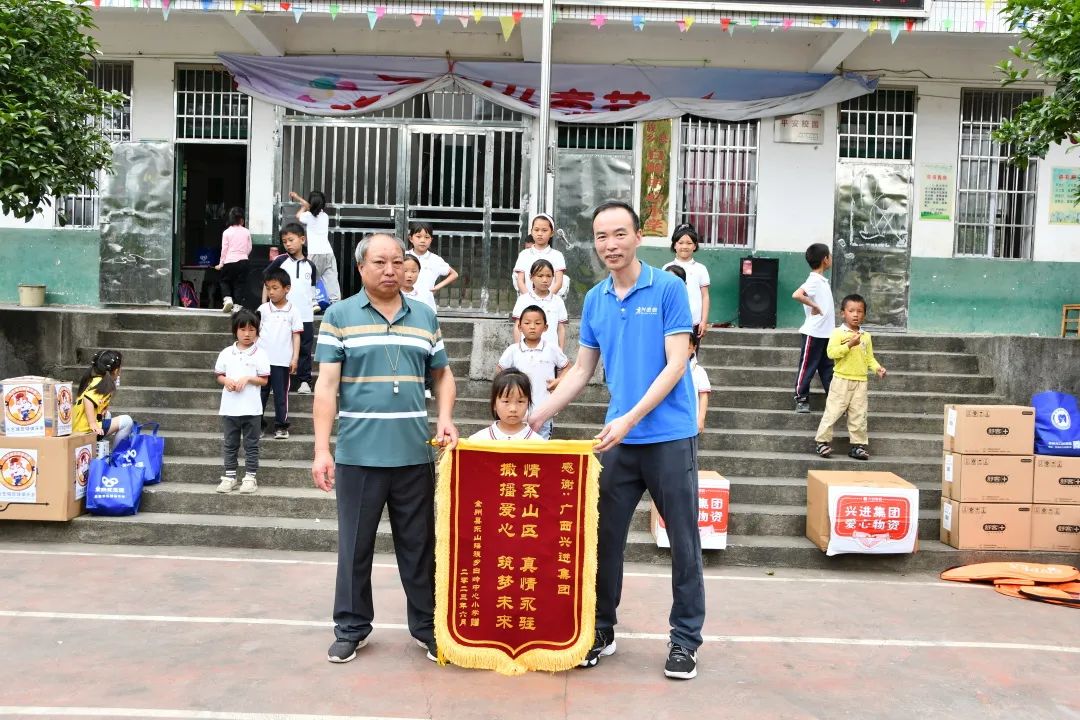 2023年5月31日,興進(jìn)集團(tuán)黨員代表及員工代表、業(yè)主代表一行組成的愛心公益團(tuán)隊(duì),跨越200多公里崎嶇山路,驅(qū)車4個(gè)多小時(shí),為全州縣東山瑤族鄉(xiāng)栗木江村白嶺小學(xué)的孩子們送來愛心物資。包括零食、玩具、文具、日用品等……無論是哪一種,都足以讓孩子們欣喜若狂。
